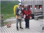 Gerade als der Regen stärker wurde, erreichten wir die bewirtete Unterlochalmhütte und kehrten dort kurz ein. Ein kurzer wolkenbruchartiger Schauer konnte uns also nichts anhaben.